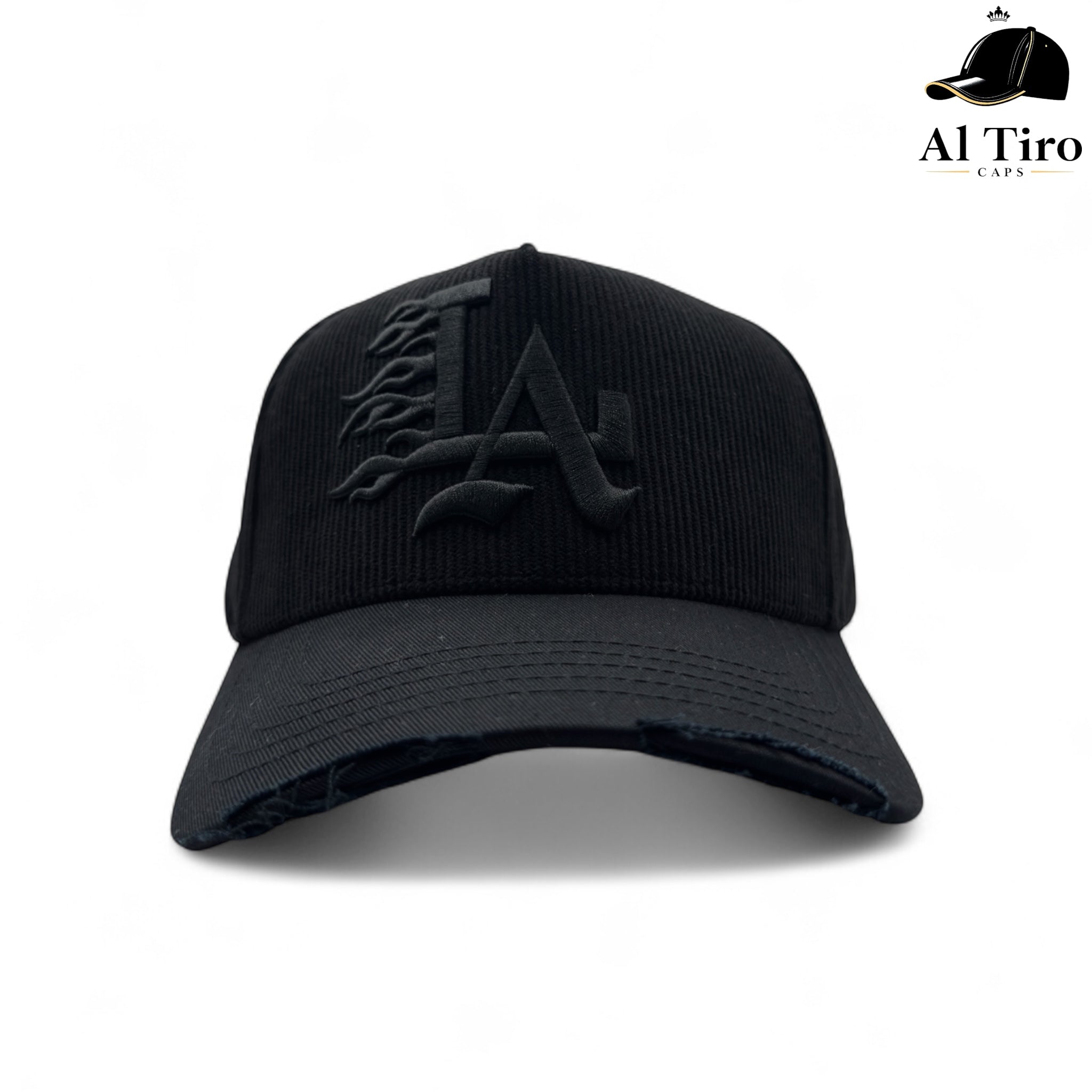 Precio regular $ 1,899.00 MXNPrecio en oferta $ 1,899.00 MXN Precio regularPrecio unitario / porLa pieza monocromática más deseada del drop: frente con bordado 3D “LA” con flames tono sobre tono, corona de corduroy (canalé) de 6 paneles, visera curva...