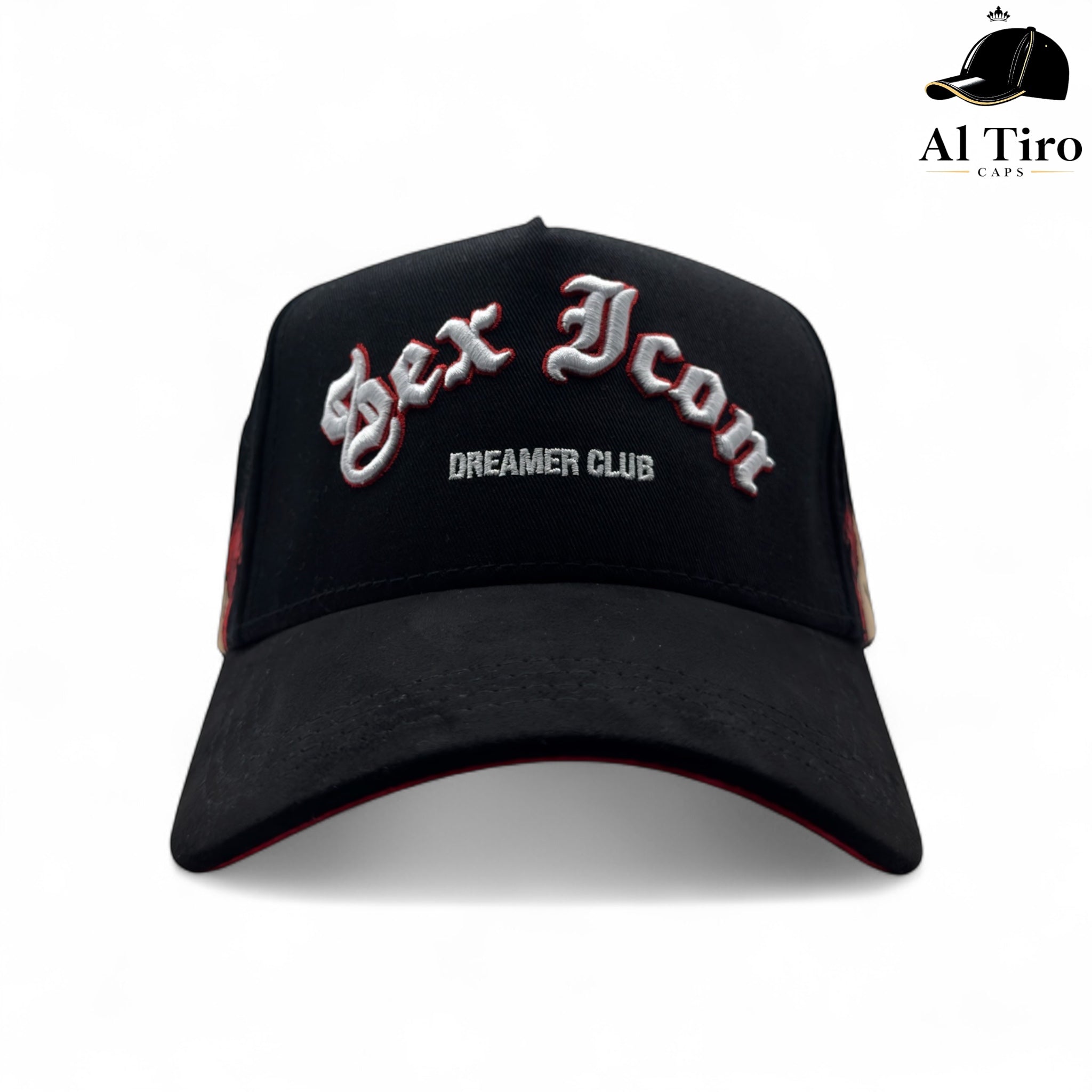 La Sex Icon de El Dreamer Hats mezcla estética gótica con arte “ángel vs. diablo”. Frente en bordado 3D, visera tipo gamuza en rojo, underbrim con...